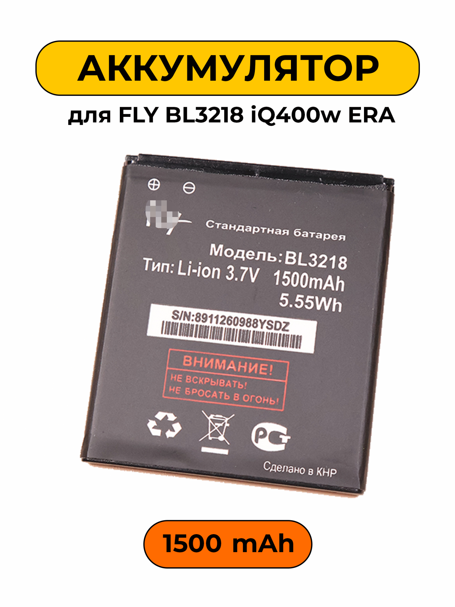 Аккумулятор для FLY BL3218 iQ400w представляет собой надежный источник питания, специально разработанный для использования с мобильными устройствами бренда FLY. Его ёмкость составляет 1500mAh, что обеспечивает длительное время работы вашего телефона. Этот аккумулятор является важной частью эксплуатации гаджета, позволяя пользоваться всеми его функциями без перебоев.