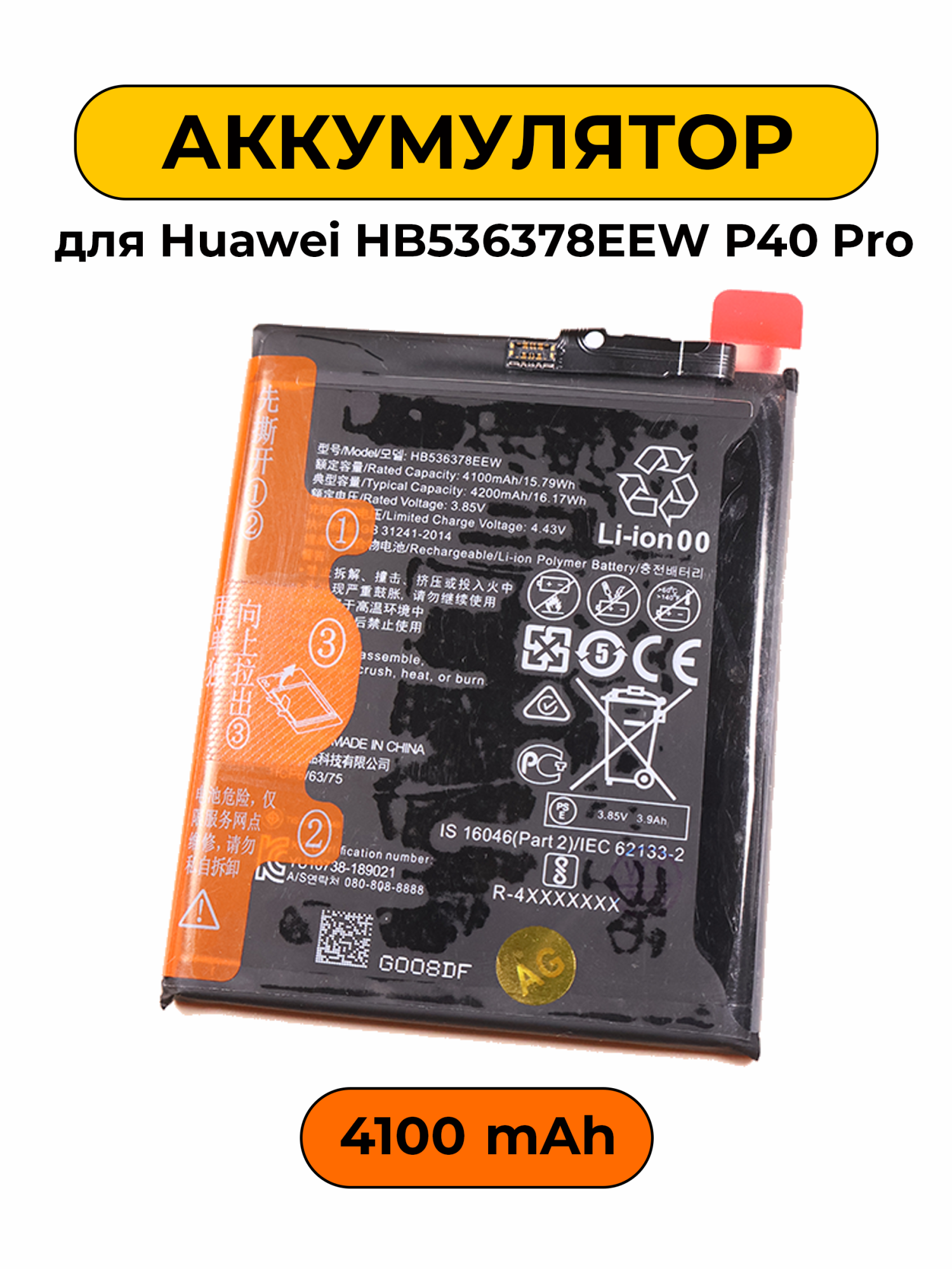 Аккумулятор для Huawei HB536378EEW P40 Pro с емкостью 4100mAh обеспечивает надежную работу вашего устройства на протяжении длительного времени. Он предназначен для замены изношенного элемента питания, что позволяет вам не беспокоиться о разрядке во время важных дел. Необходимый аксессуар для сохранения производительности вашего смарт-гаджета.