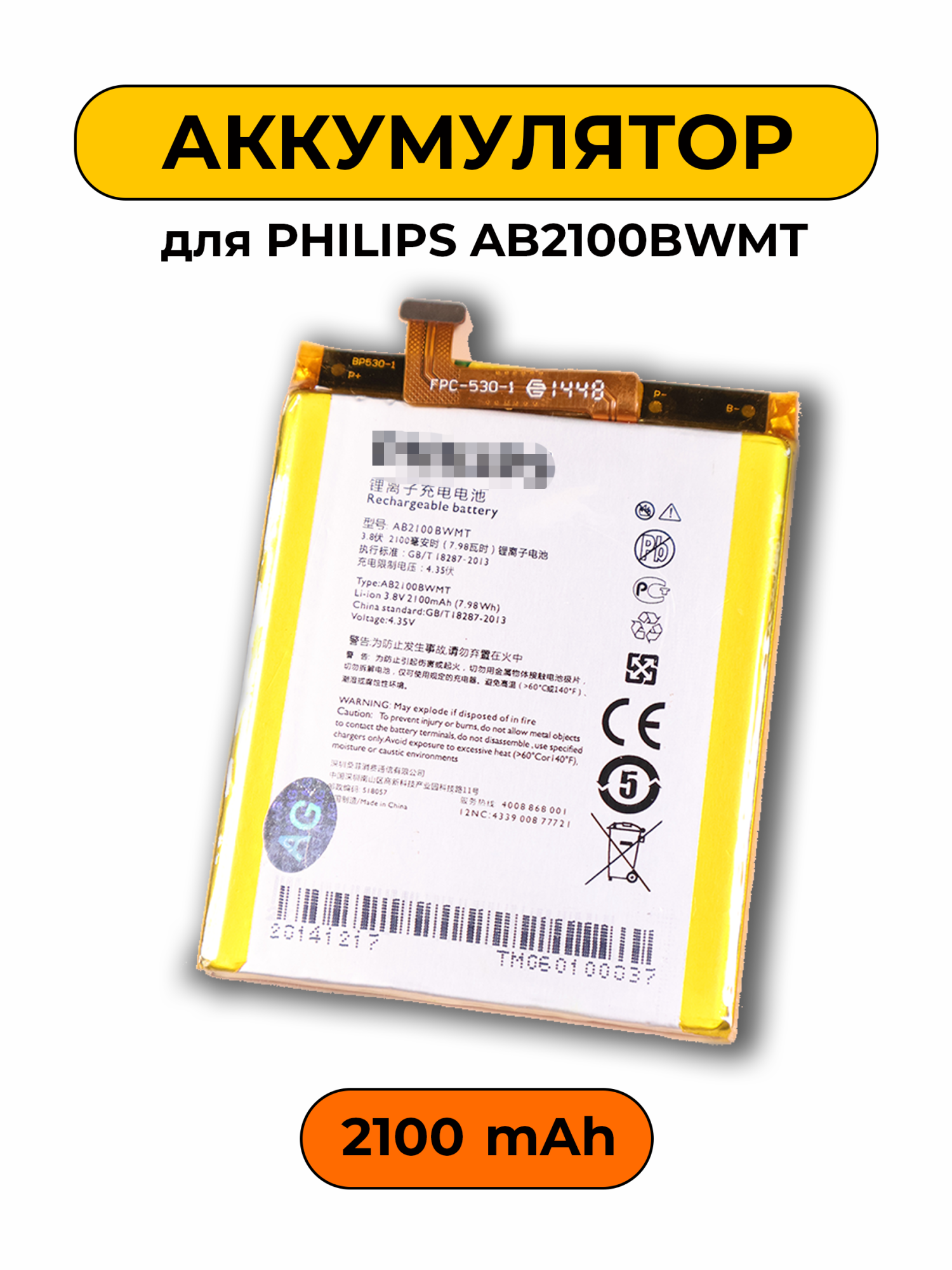 Аккумулятор для PHILIPS AB2100BWMT предназначен для обеспечения длительной работы различных устройств марки PHILIPS. Он разработан с целью повышения эффективной производительности гаджетов, позволяя им работать значительно дольше без необходимости частой подзарядки. Объем аккумулятора составляет 2100mAh, что обеспечивает надежное и стабильное питание для вашей техники.