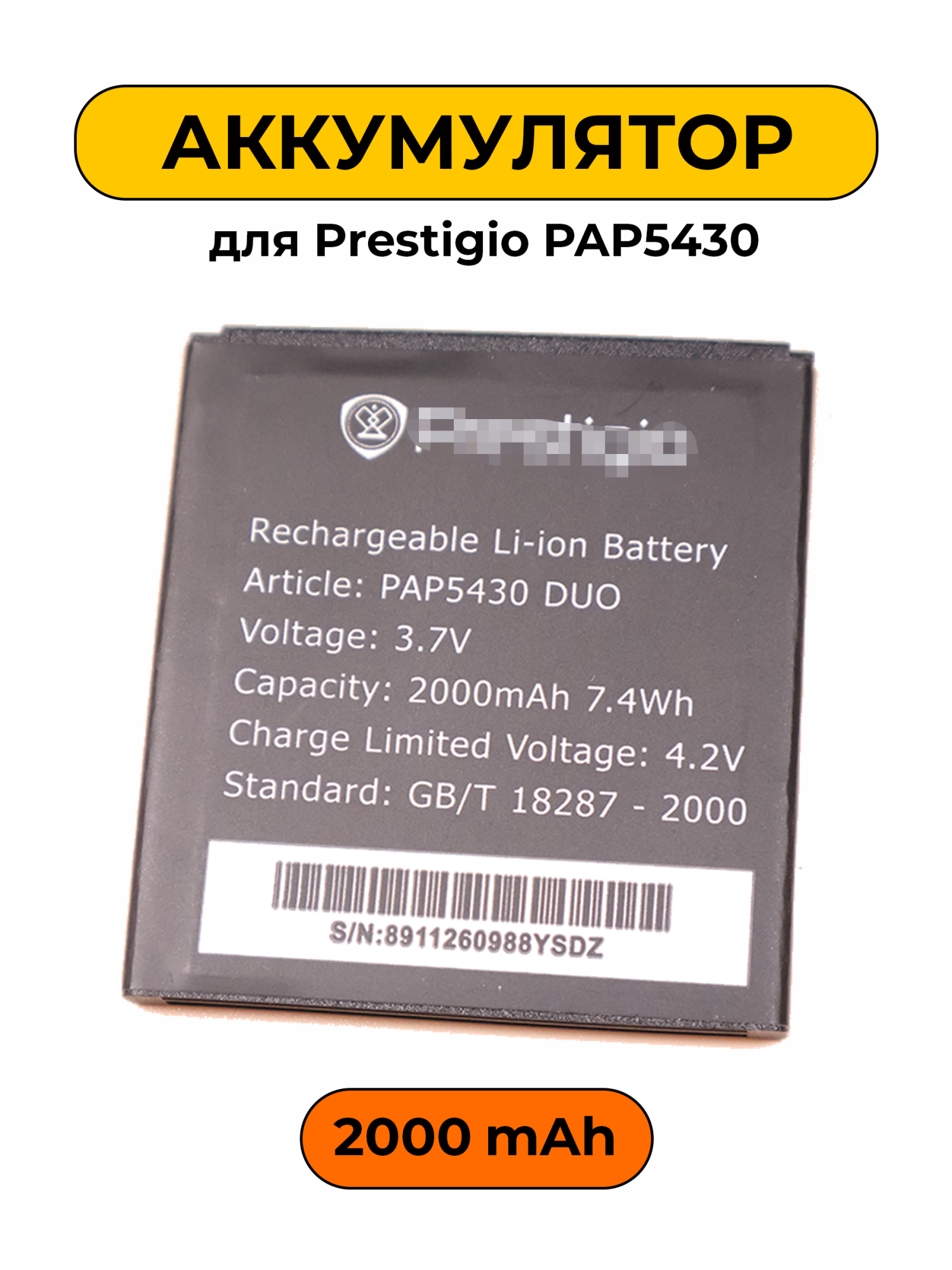 Аккумулятор для Prestigio PAP5430 2000mAh предназначен для замены изношенной или потерявшей емкость батареи вашего устройства. Он обеспечивает надежное питание и долгую работу вашего смартфона, позволяя вам оставаться на связи и использовать любимые приложения без необходимости постоянной подзарядки. Данный аккумулятор помогает обеспечить стабильную работу вашего телефона и продлевает срок его службы.