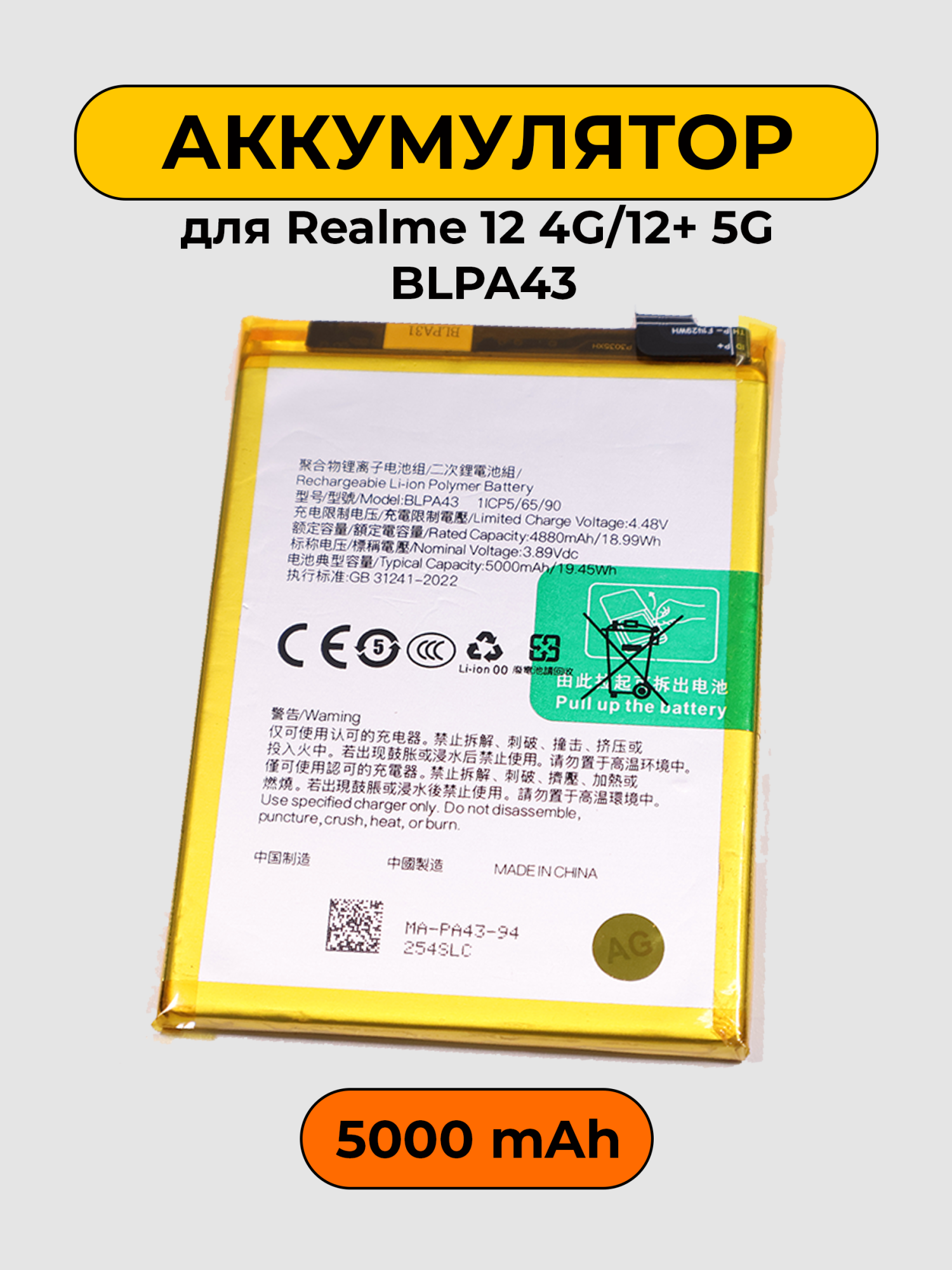 Аккумулятор для Realme 12 4G/12+ 5G BLPA43 предназначен для обеспечения надежной работы вашего смартфона. Он обеспечивает стабильное и продолжительное питание, что позволяет вам пользоваться устройством без необходимости постоянной подзарядки. С данным аккумулятором ваш телефон будет работать на высоком уровне производительности, что особенно важно в условиях активного использования.