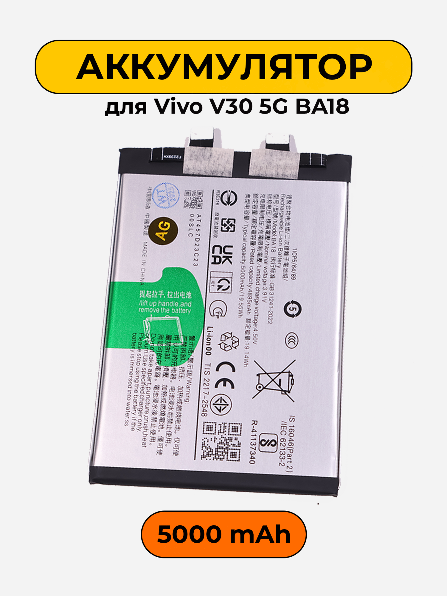 Аккумулятор для Vivo V30 5G BA18 с емкостью 5000mAh предназначен для обеспечения длительной работы вашего устройства. Этот компонент является важной частью, которая позволяет вашему смартфону функционировать даже в условиях активного использования. С помощью данного аккумулятора вы сможете наслаждаться всеми функциями вашего Vivo V30 5G без необходимости частой подзарядки.