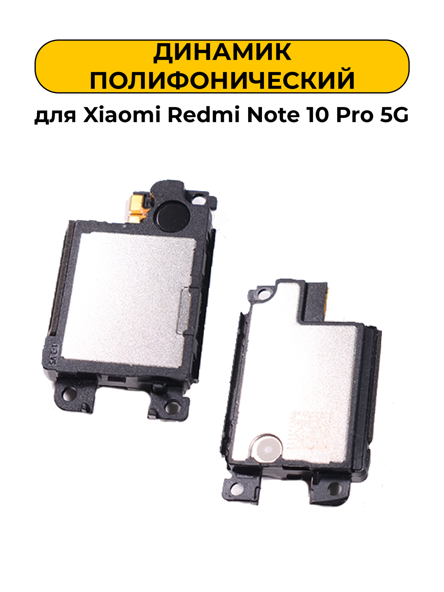 Акустический блок предназначен для использования с телефоном Xiaomi Redmi Note 10 Pro 5G. Он обеспечивает звучание звонков, уведомлений и других событий. Данный компонент совместим с указанной моделью, что позволяет восстановить функциональность устройства при возникновении проблем со звуком.